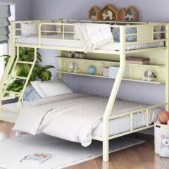 Кровать комплектуется вместительным выкатным ящиком для постельного белья или других вещей. Над нижним спальным местом располагается полка, на которой удобно разместить книги или аксессуары.