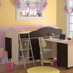 Конструкция кровати предусматривает два спальных места размером 90*190 см каждое. Верхнее спальное место защищено бортиками. Прочную лестницу с широкими ступенями можно установить справа или слева.