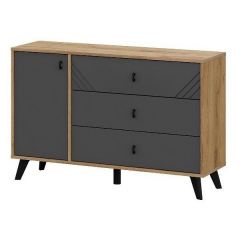 БАЙКАЛ Комод 3 ящика двухстворчатый (Графит/Дуб золотой)