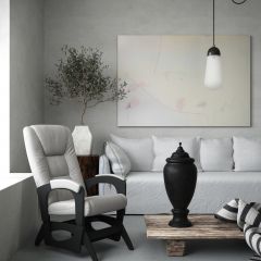 Для комфортного отдыха имеет маятниковый механизм , который выполняет классическую функцию покачивания, при этом она не проминает напольное покрытие. Кресло обтянуто мебельной тканью или искусственной кожей, каркас-дерево, боковины выполнены в виде криволинейных деталей, образующих ножки-опоры, материал боковины фанера. На боковинах имеются мягкие подлокотники.
